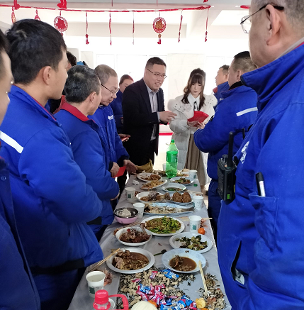 除夕夜,恒宁“同心威廉希尔williamhill,共赢幸福年”活动开启,人力行政处为坚守岗位的家人们准备了丰盛的年夜饭,集团也为大家送来了新鲜的水果。如此特别而又暖心的年夜饭,成为恒宁家人们的特别回忆,大家纷纷表示,新的一年在董事长、总裁带领下,团结协作、再接再厉,克服不足之处,保障安全达产,为公司的发展做出积极的贡献。