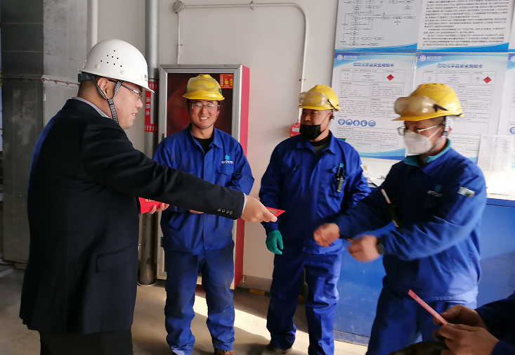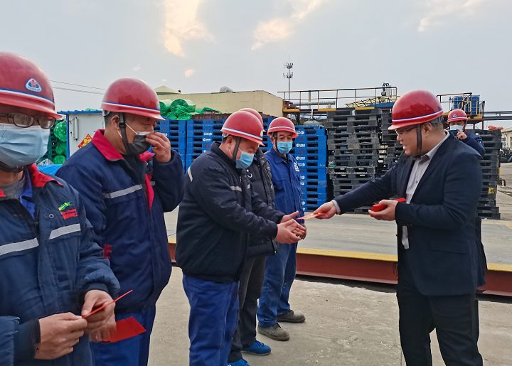 “新年好,大家辛苦了,祝大家新年快乐!”1月22日下午,总裁来到恒宁车间一线给大家拜年,并将新年红包发放到坚守岗位的干部员工手中。