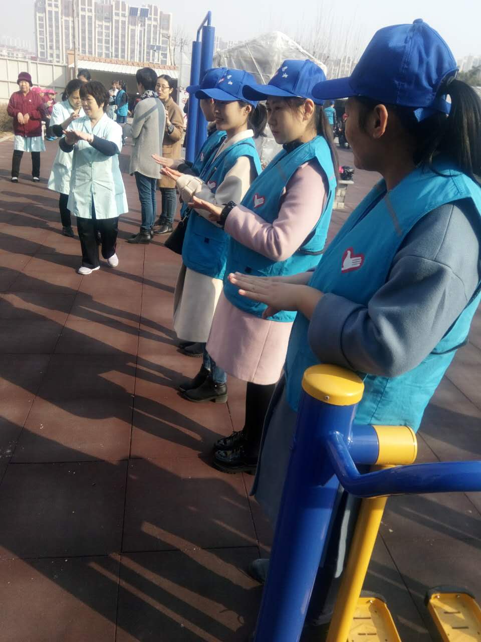 其中有一个老人拉着志愿者的手说:“我是2011年来这里住的,想起来一共到楼下去了一次”,从他的话里你便可以得知他们是多门的期待。志愿者们一人搀扶一位老人慢慢的来到了楼下; 志愿者们主动给手脚不灵便的老人按摩起来; 有的还跟老人们聊天,给老人们表演节目,为的就是给他们带去快乐。有个老人看到志愿者们这么热闹的场景,反倒流起了眼泪,也许是想家人了,也许勾起了他年轻时候的一些回忆。